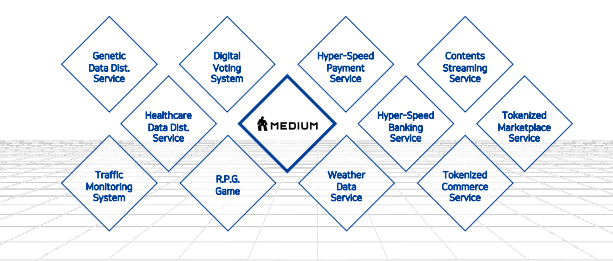 MEDIUM 블록체인 플랫폼은 현존하는 모든 ICT 서비스가 탈중앙화된 네트워크 자원을 활용하여 서비스를 구현하고자할 때 초고속의 성능과 최저 비용의 환경을 보장한다. 초고속 블록체인 플랫폼 환경은 암호 화폐로 새롭게 창조될 새로운 경제 시스템 기반에서 다양한 분산화 서비스 분야의 혁신을 가져올 것이라 확신한다.
